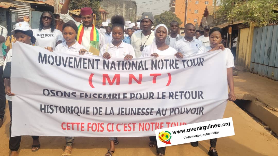 Comme nous l’annoncions dans l’un de nos récents articles, le « Mouvement National Notre Tour », dirigé par le jeune leader politique Ibrahima Tenimba Kourouma, a organisé ce samedi matin une marche blanche devant le siège du parti politique GUIDE à Tombolia, dans la commune de Matoto. L’objectif de cette protestation est de demander le départ des anciens politiciens au profit de la jeunesse.