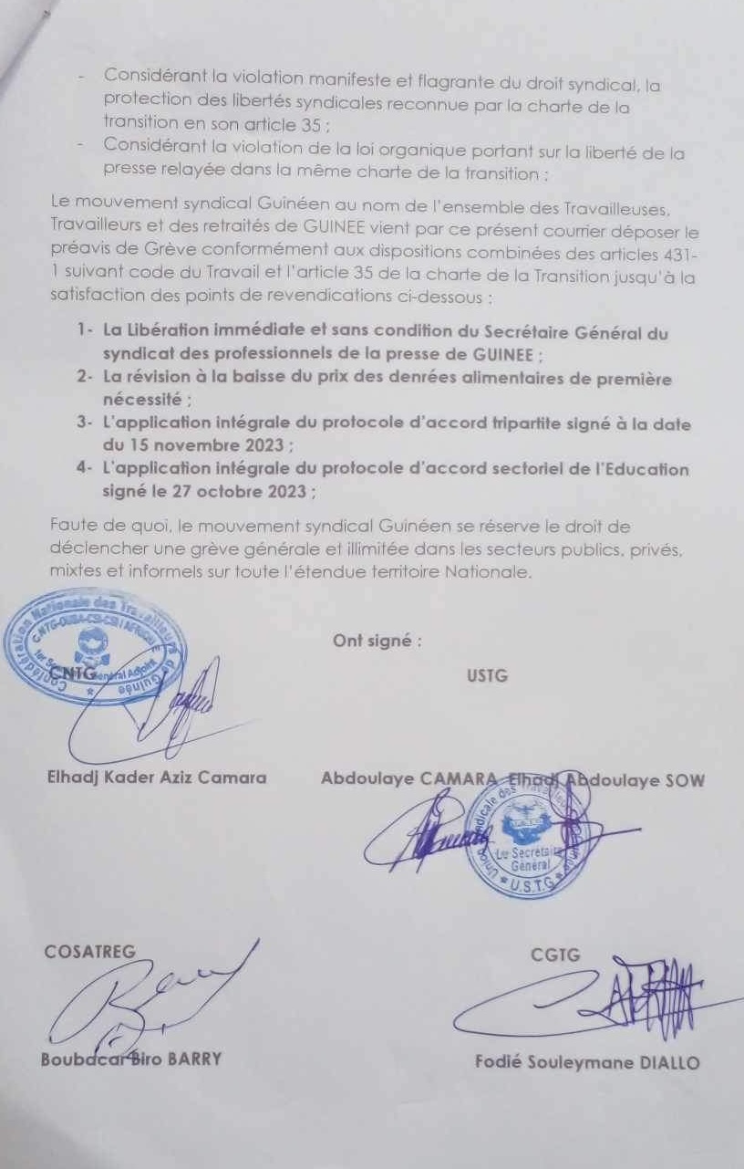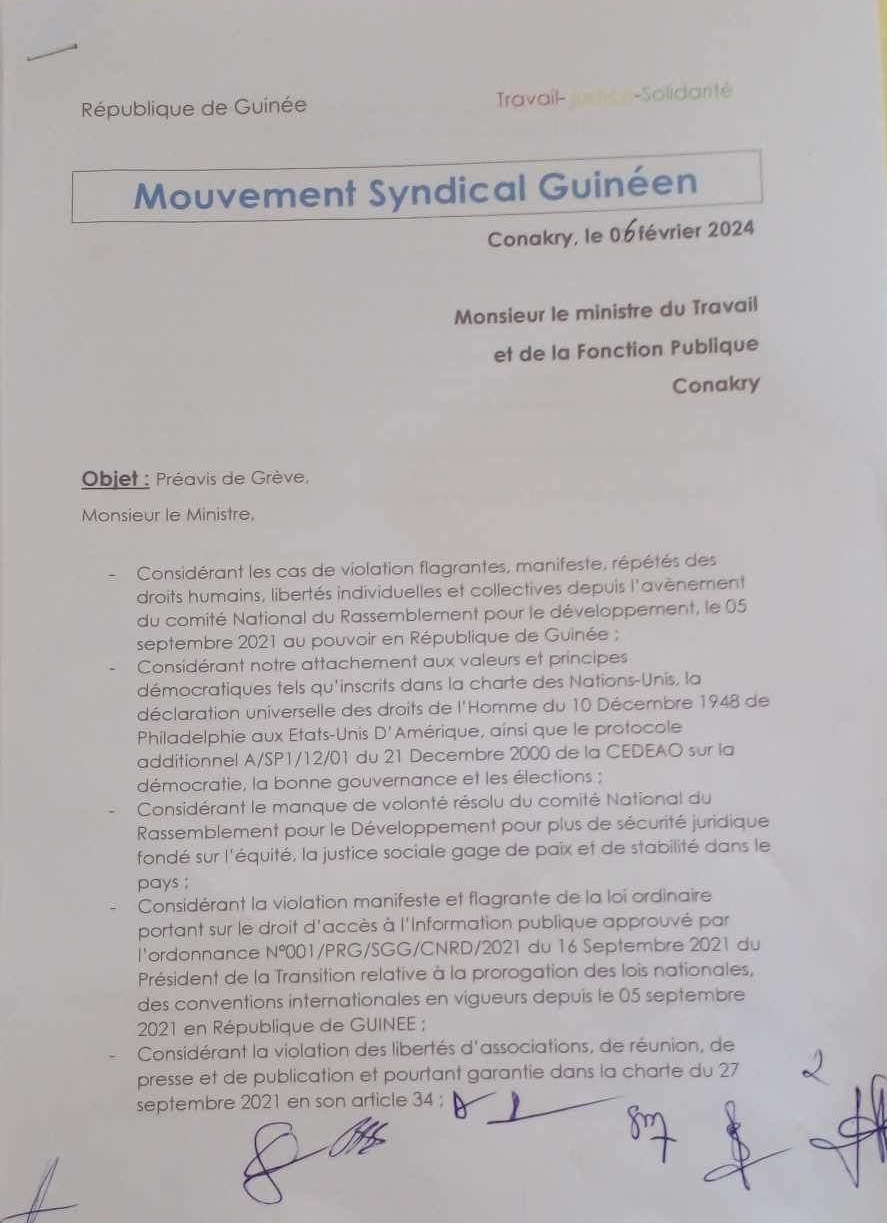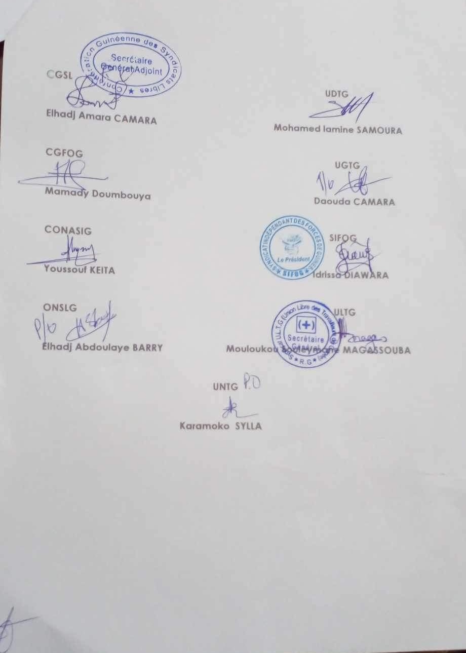 La rencontre de ce mardi entre les leaders syndicaux et les travailleurs à la bourse du travail, s’est soldée par le dépôt d’un préavis de grève de l’ensemble des travailleurs et travailleuses de Guinée.