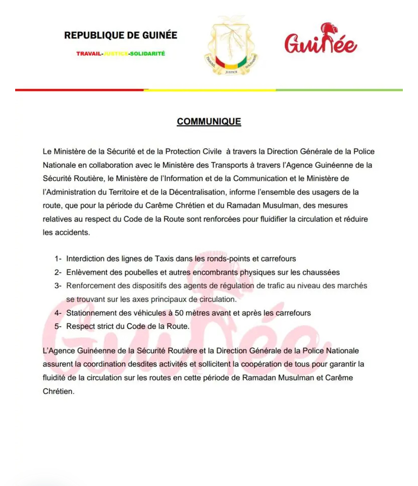 En cette période du Carême et du Ramadan, le gouvernement guinéen intensifie les mesures visant à assurer le respect du code de la route, dans le but de fluidifier la circulation et de réduire les accidents.