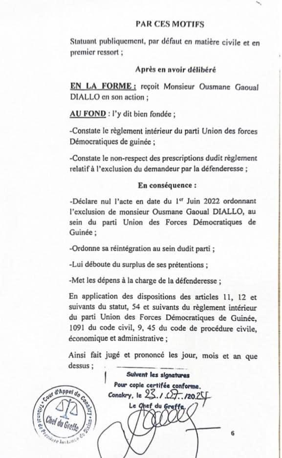 C’est une victoire pour l’homme politique et ministre de la Transition Ousmane Gaoual Diallo. Le tribunal de première instance de Dixinn a ordonné, ce lundi 29 juillet, sa réintégration au sein de l’UFDG, formation politique qui l’avait exclu.