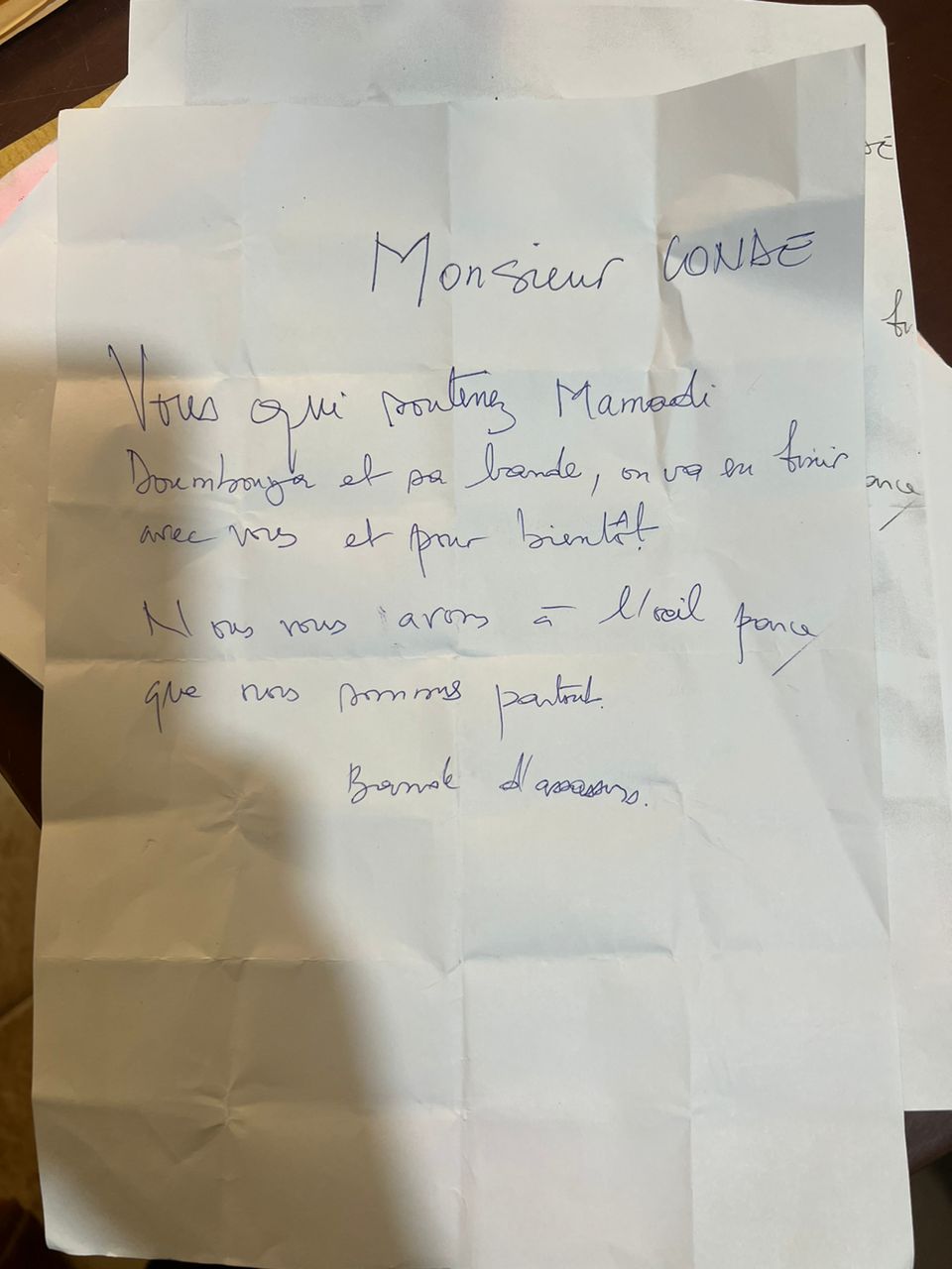 Fervent défenseur et membre influent du mouvement « Merci mon Général » d’Ismaël Condé, il dit avoir reçu des menaces de mort sur les réseaux sociaux. Pire encore, ce mercredi matin, il a retrouvé devant sa porte une note de menace. Entre les lignes, on pouvait lire : « Monsieur Condé, vous qui soutenez Mamadi Doumbouya et sa bande, on va en finir avec vous et bientôt. Nous vous avons à l’œil parce que nous sommes partout », était-il écrit sur un papier rame.