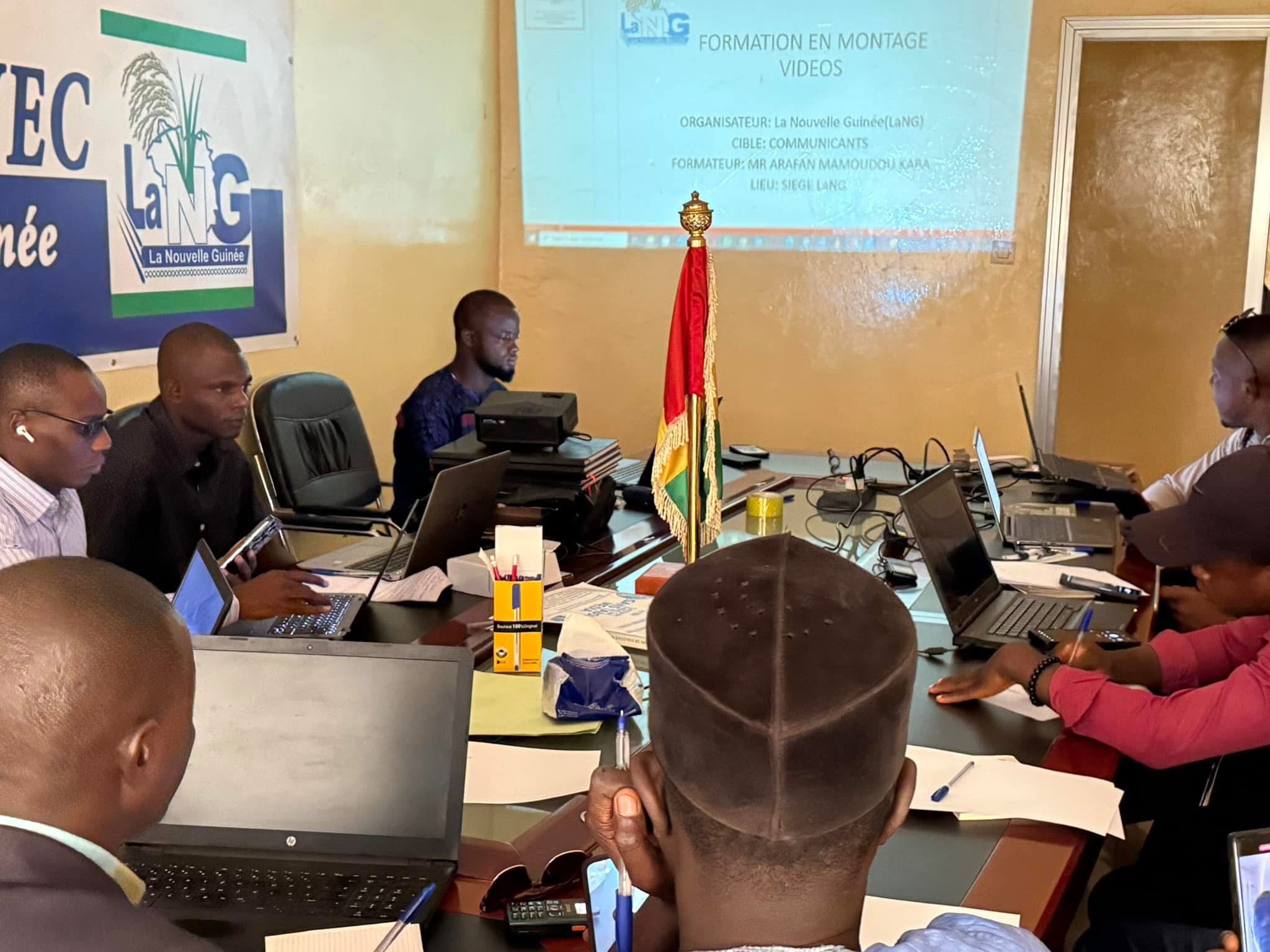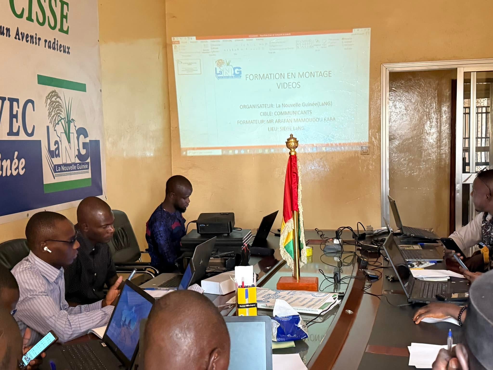 « J’ai procédé ce samedi matin au lancement d’une formation en montage vidéo des 12 jeunes communicants de #LaNG. Je souhaite aux apprenants une meilleure compréhension pour servir le parti et la Nation avec loyauté et dévouement. »