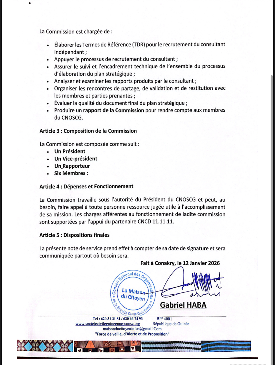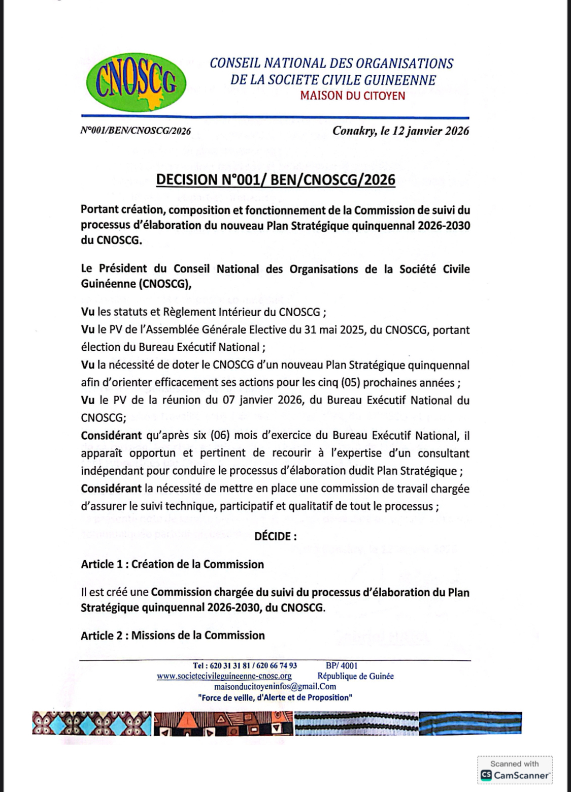 Cette décision marque la volonté de la nouvelle équipe dirigeante du CNOSCG, de renforcer la gouvernance et l’efficacité de la plus grande faîtière de la société civile guinéenne, à travers une vision structurée, participative et tournée vers les résultats.