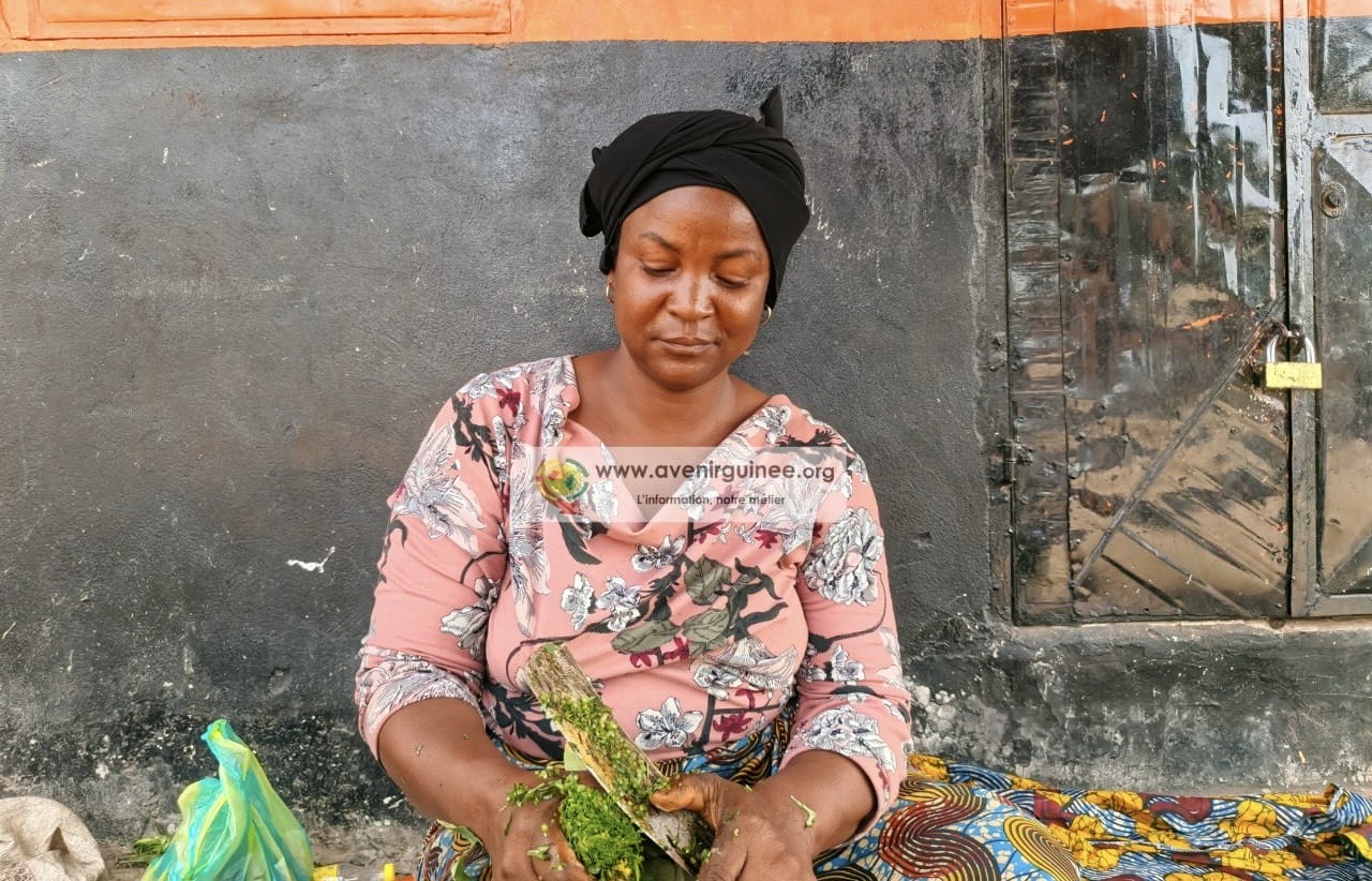 Fatoumata Soumah, quadragénaire et vendeuse de feuilles de patates depuis plus de quatre ans, ne perçoit aucune amélioration dans sa condition de vie malgré les célébrations annuelles.
