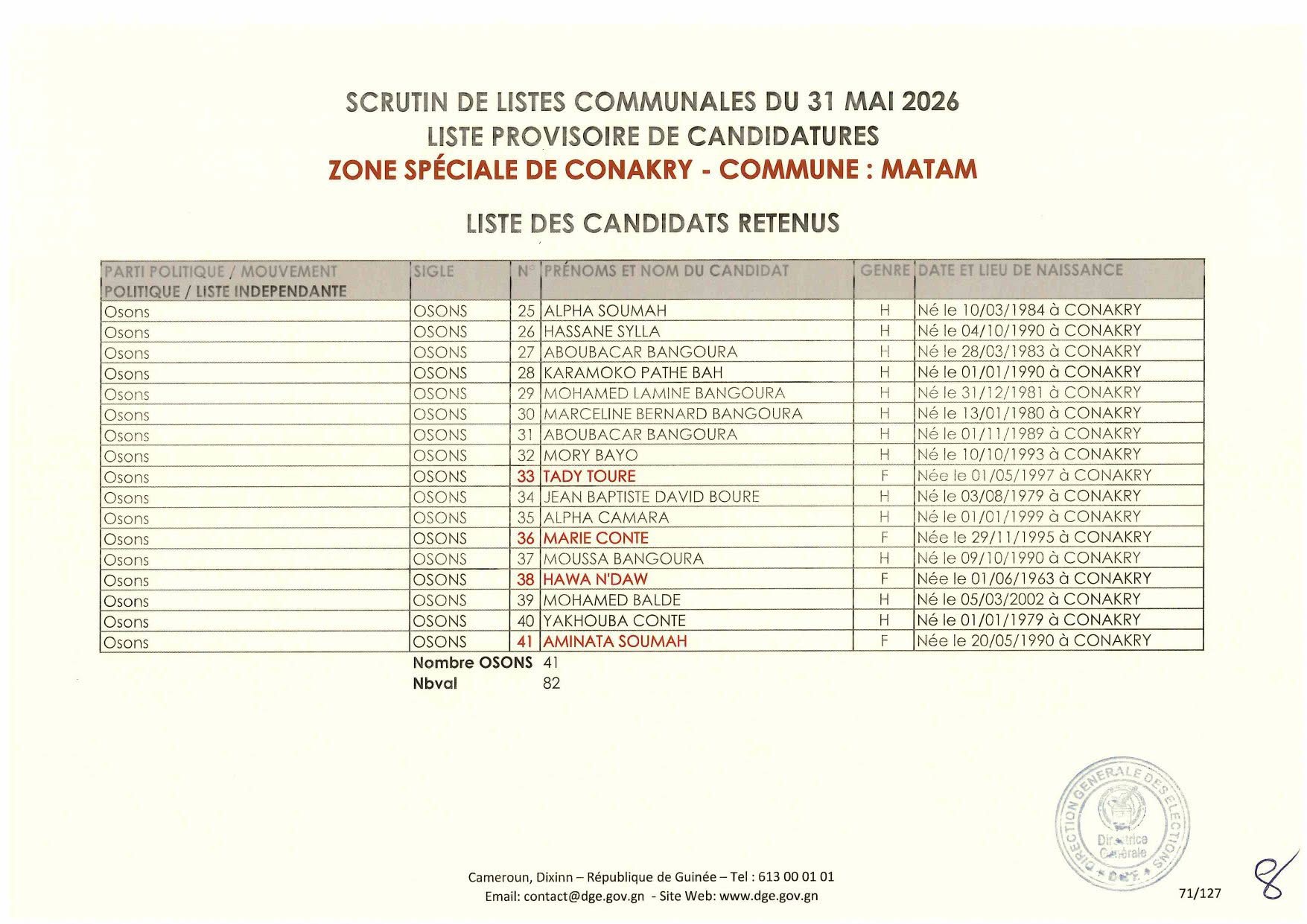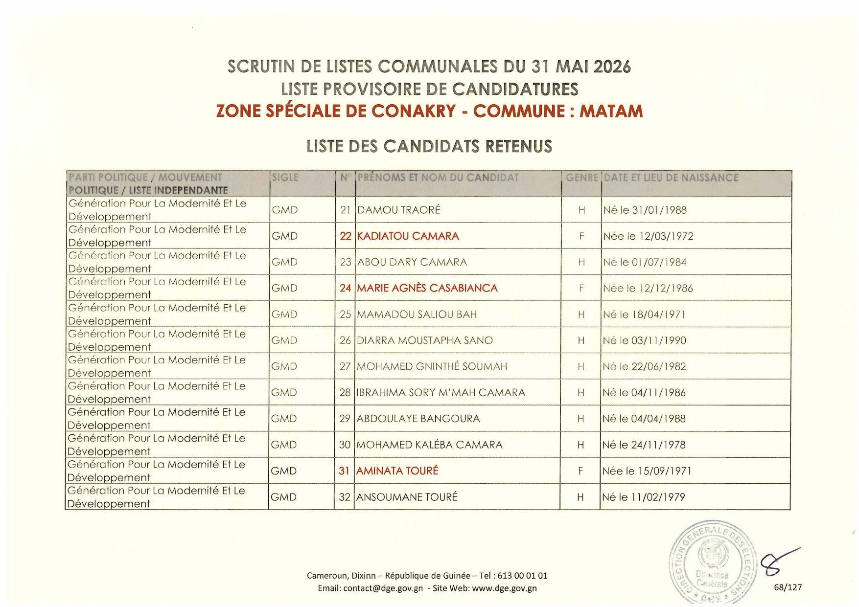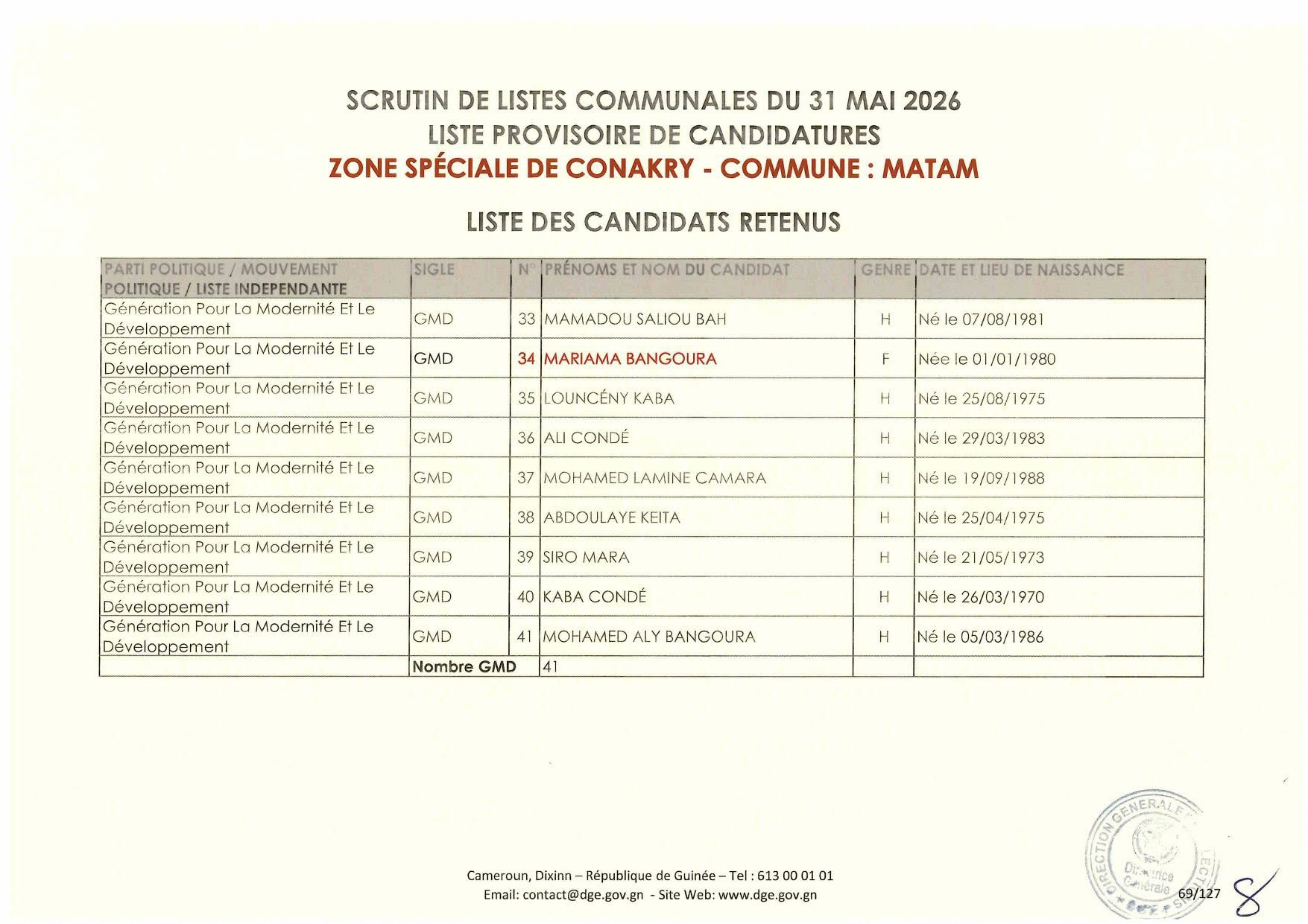 La Direction Générale des élections la publié la nuit dernière la liste des candidatures retenues dans le cadre des élections communales prévues le 31 mai 2026.